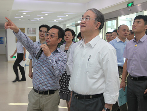 桑委員長率領的專家組一行實地考察了科技園生物技術中心、長效與靶向制劑國家重點實驗室以及生物藥中試基地等公共技術平臺,認真聽取了相關技術負責人關于平臺建設、核心技術以及重大新藥創制項目的進展情況。
